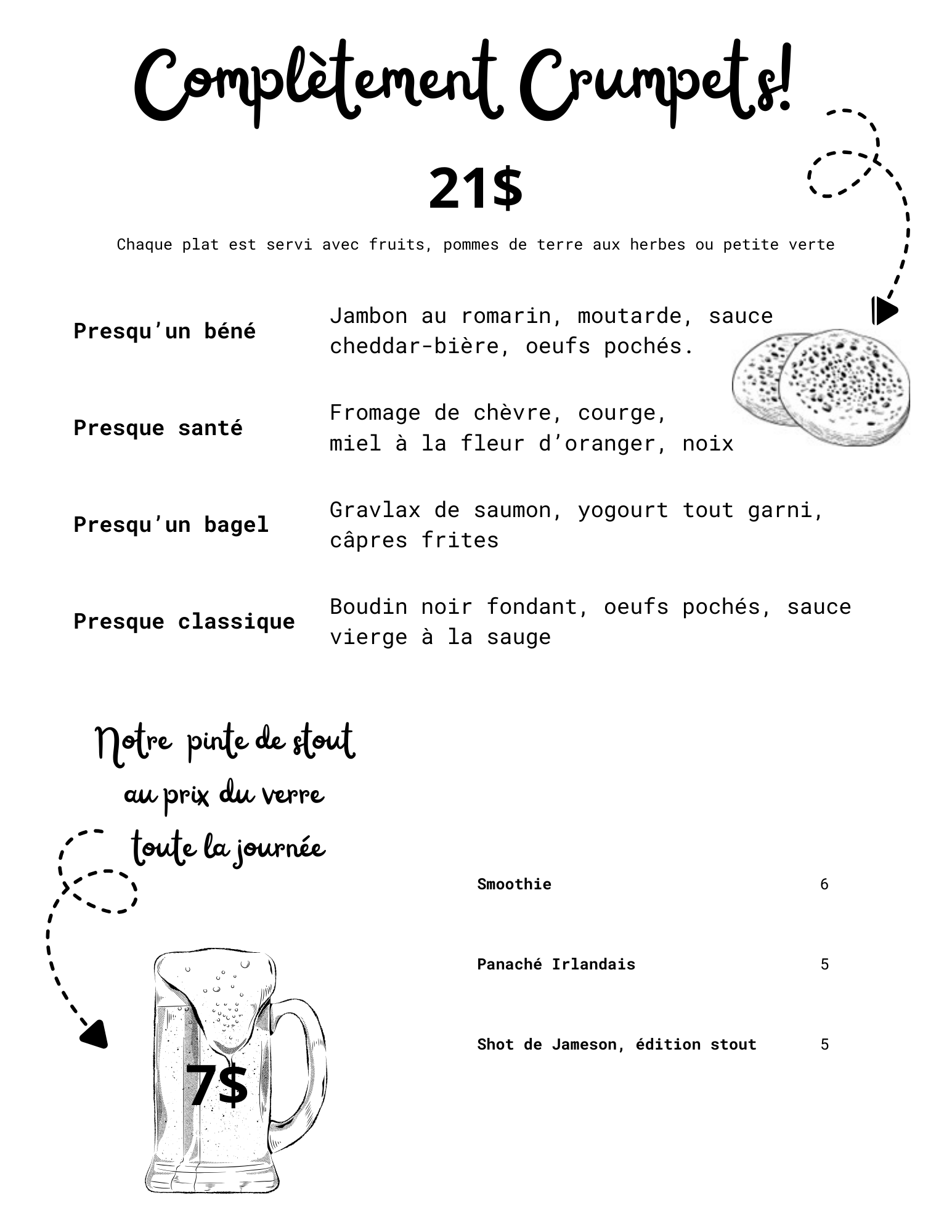 La pinte de notre stout 1904 sera au prix du verre toute la fin de semaine !Formule Brunch complétement Crumpet ce samedi de 11h à 15h (retour du menu régulier dès 16h)Un cask de 1904 sera disponible dès 11h. -